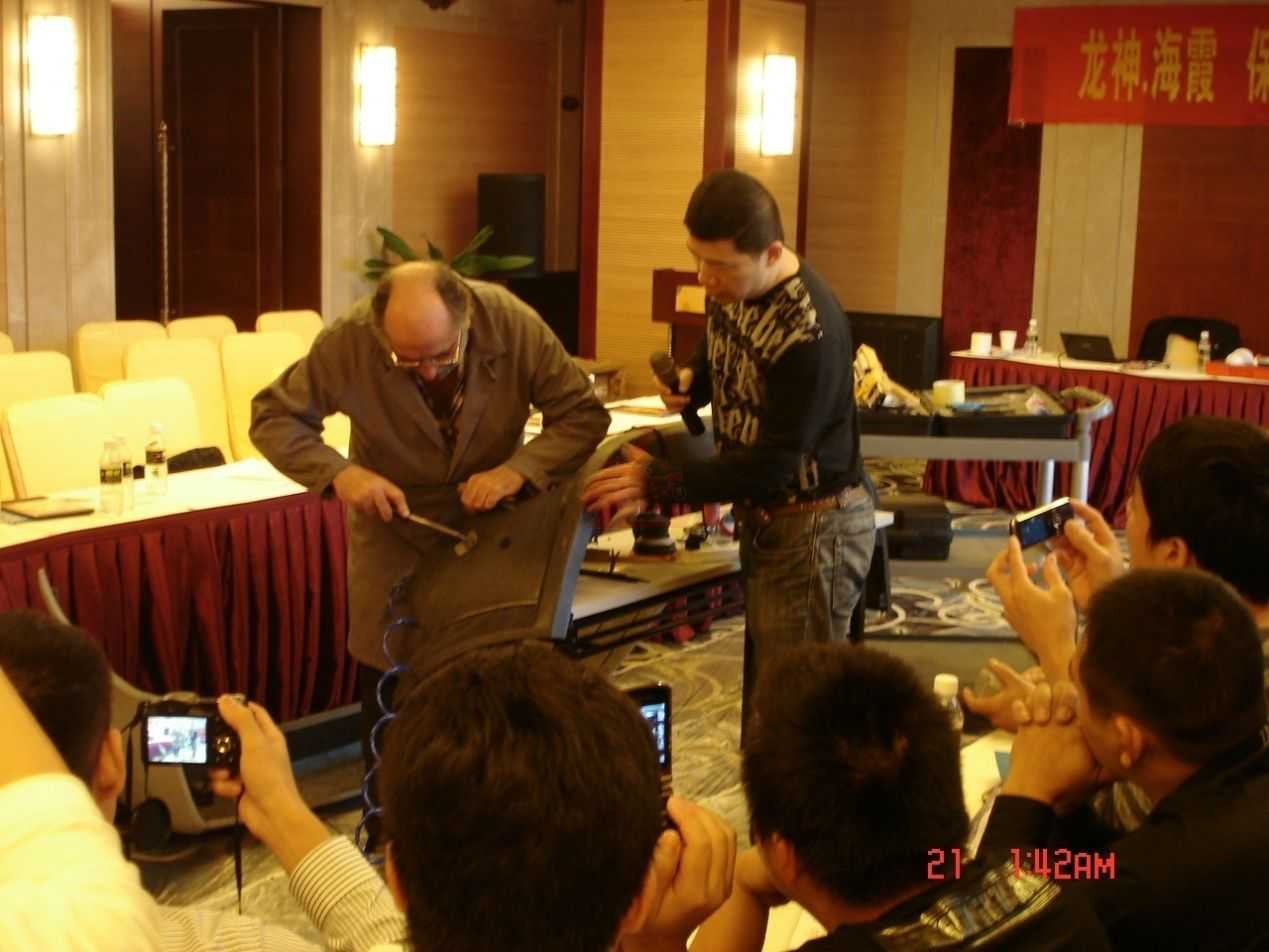 為了提高汽車保險杠修復效率和質量、減少維修成本,珠海市龍神有限公司邀請歐洲頂級汽車鈑噴維修專家Mr.Jean-Luc Dourté、于2011年11月在北京、廣西、四川、海南、廣東五地舉行巡回保險杠新型快速修復技術交流會,現場實操、講解國際最新的鈑噴修復技術。