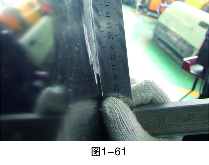 步驟20(測量):對修復平面進行測量,檢查是否在同一水平線上,如果是就可結束鈑金修復作業,否則重復前面步驟直至修復完成,如圖1-61所示。