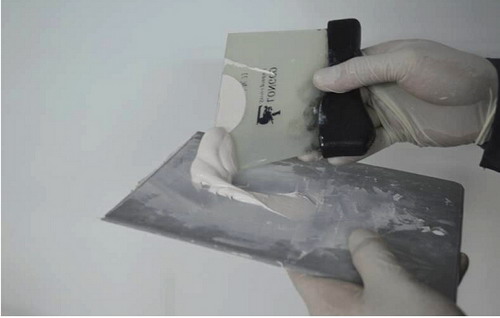 (3)施涂原子灰時要快,必須在混合以后大約3min以內施涂完。如果花費時間太長,原子灰就可能在該道施涂完成前固化而影響施涂。