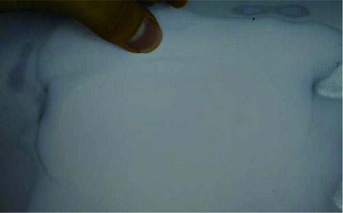 (7)如此重復地拌和,在這過程中注意觀察混合物顏色的均勻程度,直到原子灰充分拌和。如圖2-39所示。
