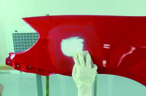 原子灰涂層薄的地方往往比厚的地方溫度低,因此薄涂層的固化干燥速度一般比厚的地方慢,所以以原子灰薄的地方來檢測原子灰是否干燥就可以了。原子灰干燥以后即可進行下一道工序:打磨原子灰。