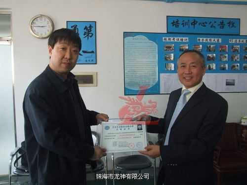 龍神總經理彭小龍為老師頒發汽車鈑金與噴漆修復技術合格證書