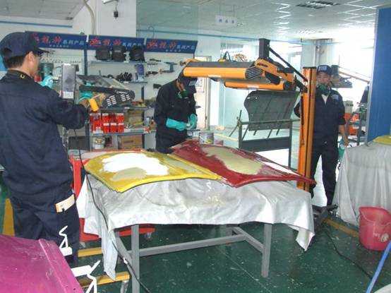 龍神牌紅外線烤燈正在進行烤漆作業(yè)