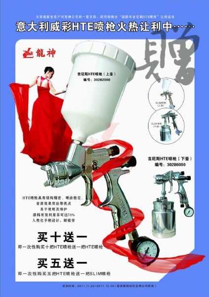 1、 買十送一(即一次購(gòu)買十把HTE噴槍送一把HTE噴槍)