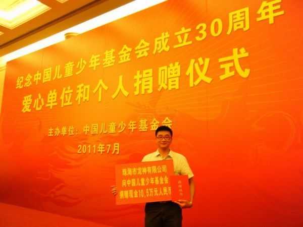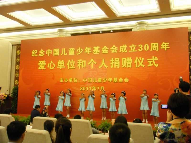 2011年7月5日,紀(jì)念中國(guó)兒童少年基金會(huì)成立30周年愛心單位和個(gè)人捐贈(zèng)儀式在北京人民大會(huì)堂舉行。全國(guó)人大常委會(huì)副委員長(zhǎng)陳至立出席捐贈(zèng)儀式,為愛心單位和個(gè)人頒發(fā)捐贈(zèng)證書并講話。