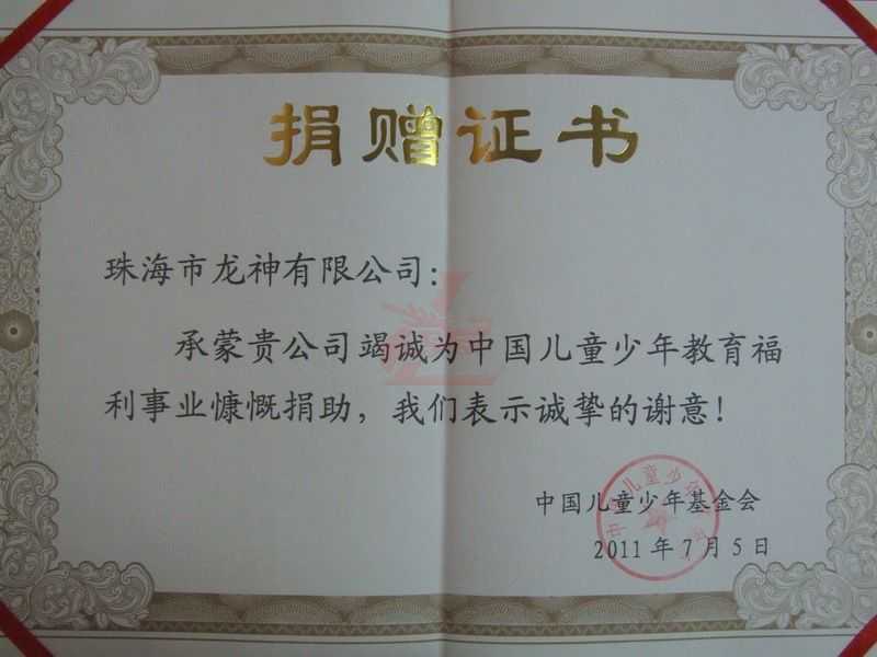 我司為支持中國(guó)兒童少年基金會(huì)的發(fā)展捐獻(xiàn)了自己的愛心,為著祖國(guó)的未來貢獻(xiàn)一份綿力。