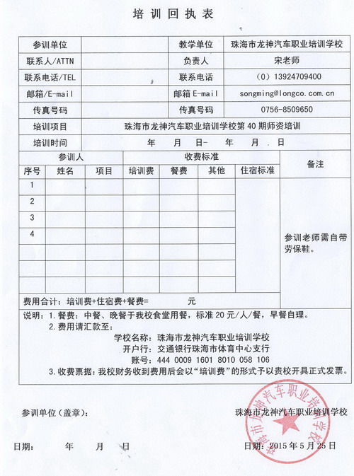 3、報名回執表需在培訓開始前3日,回傳至我校。