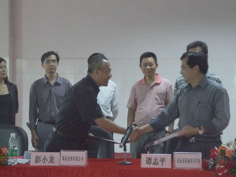 清遠市職業技術學校校企合作簽字儀式 2011年4月22日,我司在清遠市職業技術學校舉行校企合作簽字儀式。在學校與合作企業的領導作了簡短發言后,簡單而隆重的簽字儀式正式開始。在儀式結束后有關人員參觀了學校內的汽車教學實操間,實地了解學校教學狀況。 校企合作模式為教學提供了強大的技術支持,為培養未來汽車技能人才打下了穩固的基石。 簽字儀式現場 我司彭總發言 雙方簽字 達成合作協議 領導合照 2011-04-27 10162