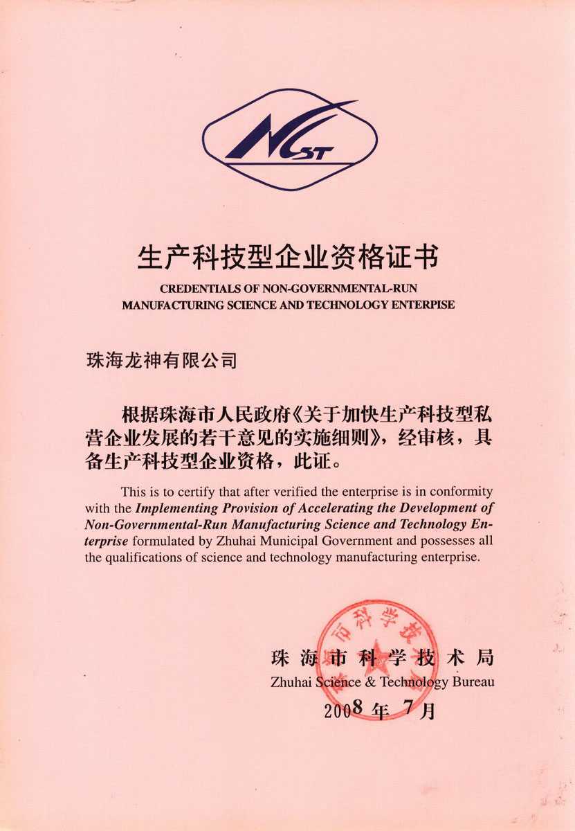 資格證書 一、ISO9001:2008質量管理體系認證ISO9001:2008質量管理體系認證證書 二、廣東省民營科技企業資格證書民營科技企業資格證書 廣東省民營科技企業 三、珠海市生產科技企業證書生產科技型企業 珠海市生產科技型企業 認定證書 生產科技型企業資格證書(以上圖片均可點擊放大) 2012-11-27 36577