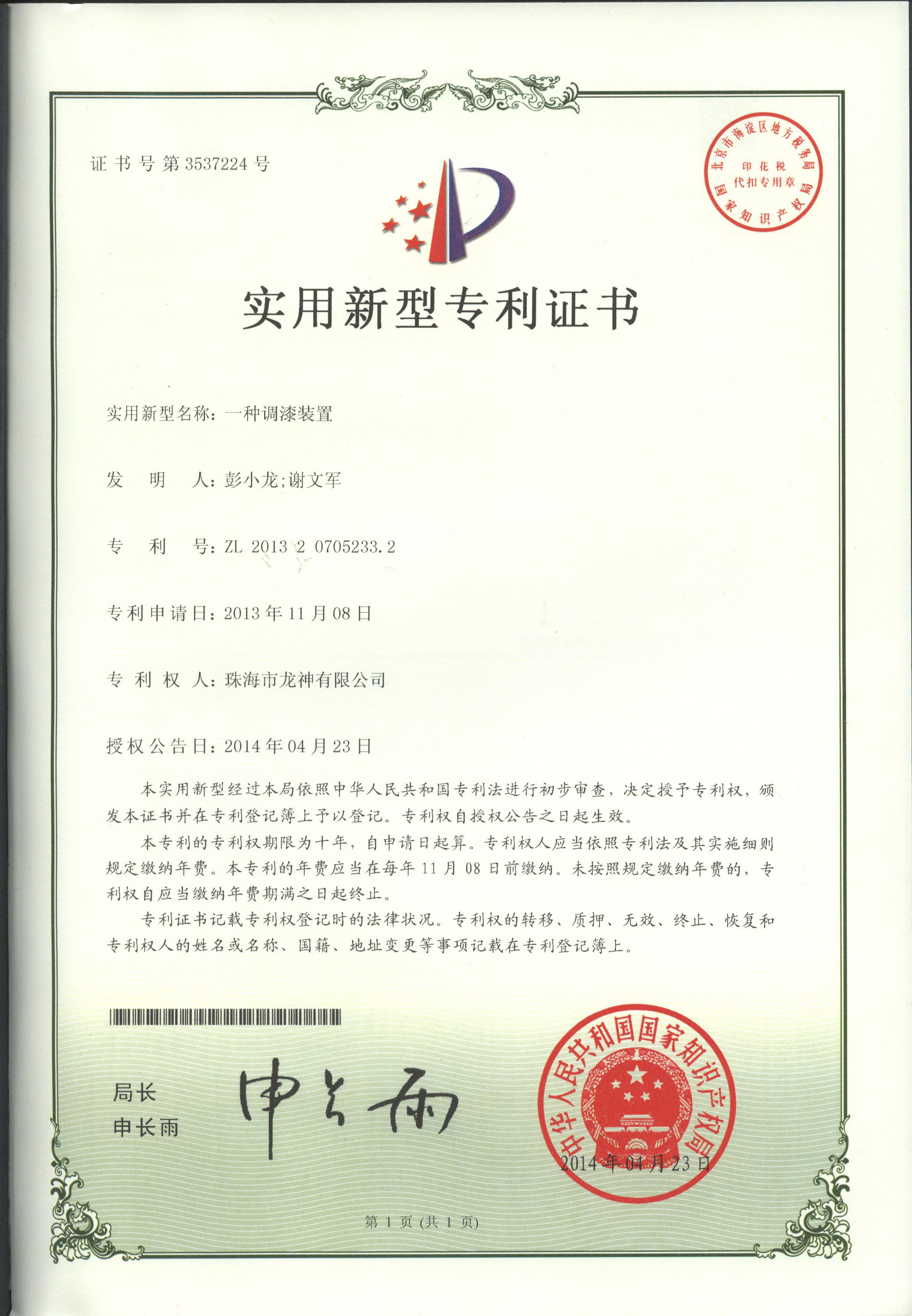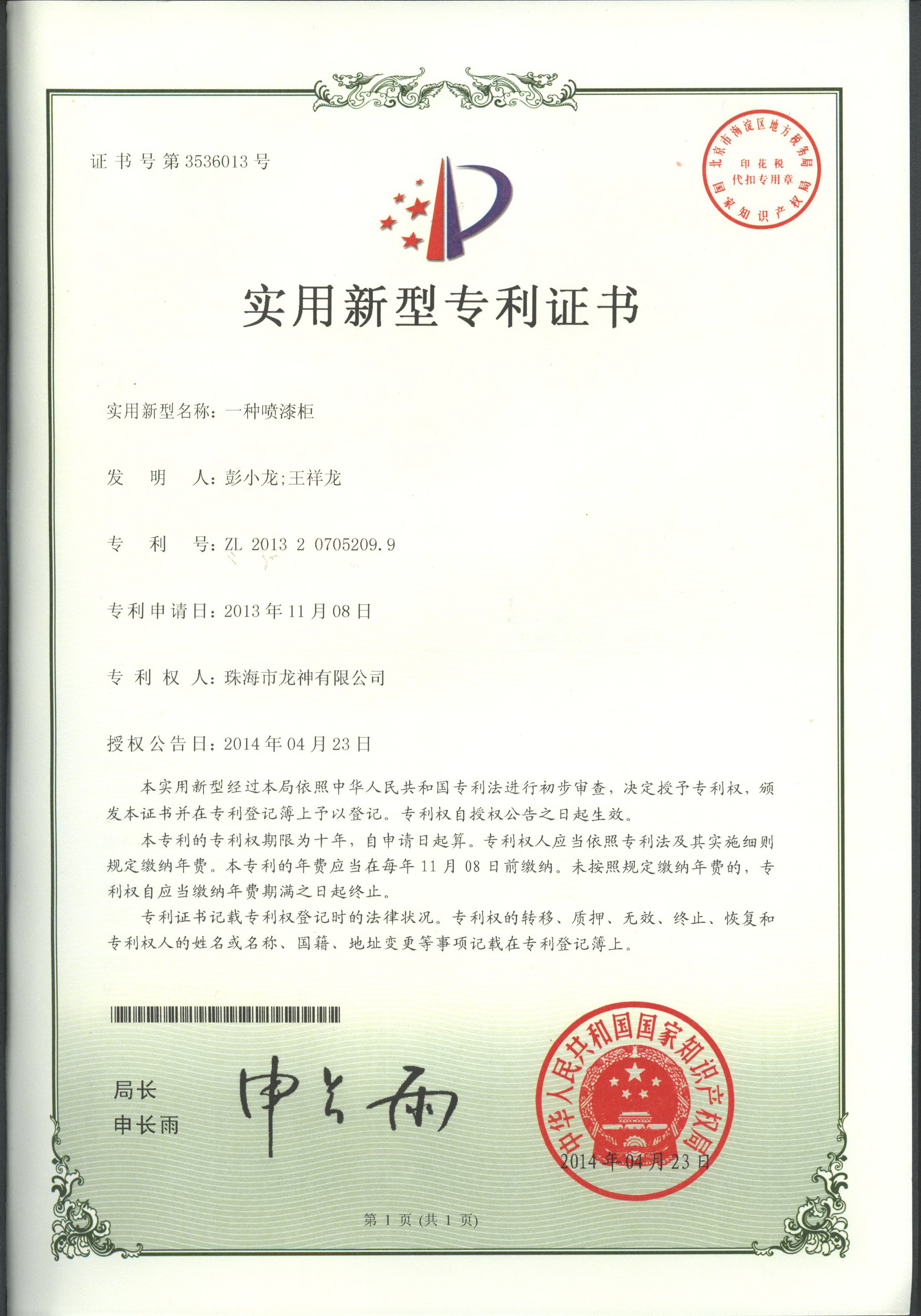 企業榮譽 調漆裝置專利證書 噴漆柜專利證書遮蔽紙切紙架專利證書 塊型拉拔鉤專利證書 噴槍清洗機專利證書無靜電干燥加熱器專利證書 壓縮空氣空壓機房供應系統專利證書除油劑導料器專利證書多功能噴槍清洗機 環保自吸塵打磨系統 切膜裝置汽車保險杠修復專用電烙鐵 精確可調整形架專利證書 移動式無塵干磨專利證書 管道快速連接件專利證書 彭小龍總經理證書 2012-11-27 30522