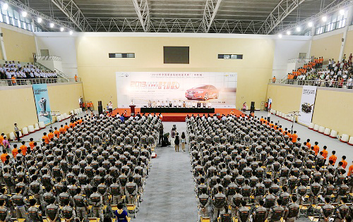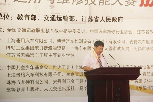 6月20日上午,2013年全國職業院校技能大賽中職組“雪佛蘭杯”汽車運用與維修技能大賽開幕式在無錫汽車工程中等專業學校體育館舉行。交通運輸部道路運輸司王水平副司長、江蘇省教育廳楊湘寧副廳長、無錫市人民政府華博雅副市長、大賽主贊助商——上海通用汽車有限公司黨委書記黃強出席開幕式并致辭。裁判員代表洪永楠、參賽選手代表何宇先后宣誓。大賽開幕式由國家教育部職成教司農村教育處劉杰處長主持。