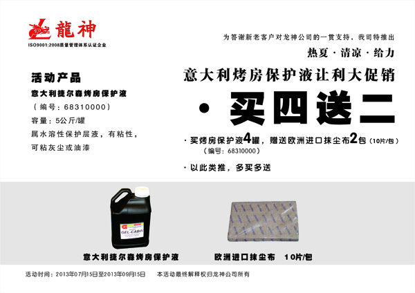 “熱夏。清涼。給力”意大利烤房保護液讓利大促銷。
