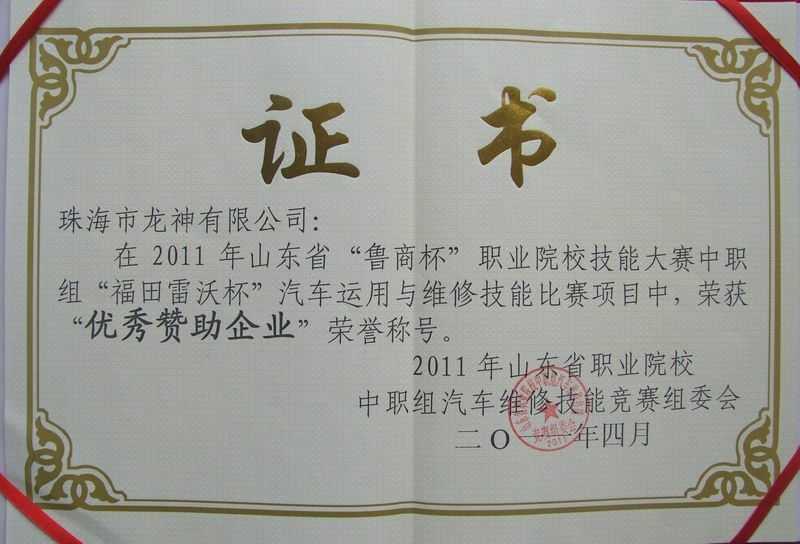 我司榮獲2011年山東省技能大賽“優秀贊助企業”榮譽稱號 我司榮獲2011年山東省技能大賽“優秀贊助企業”榮譽稱號 4月7日,在「2011年山東省“魯商杯”職業院校技能大賽」中職組“福田雷沃杯”汽車運用與維修技能大賽項目中,我司榮獲“優秀贊助企業”榮譽稱號。 珠海市龍神有限公司全力支持校企合作的辦學模式,在2011年中國中職大賽成為贊助商之一,此次獲獎給予了龍神莫大的鼓勵,也是為我們的前進增加了信心和希望。在這日新月異的科技時代,我們將不斷地努力,以嶄新的研發技術成果展現在大眾眼前。 證書 比賽現場---紅外線烤燈烘烤 比賽現場---正在修復車身板件 2011-04-18 10226