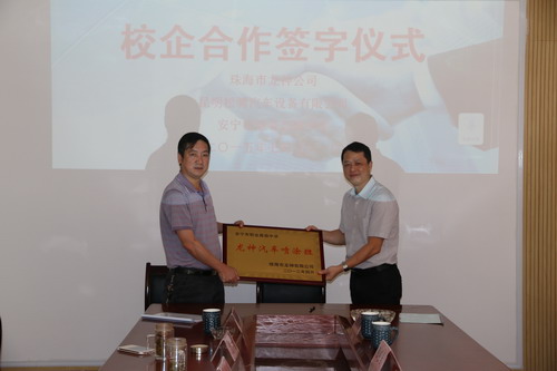 珠海龍神與安寧職中“Longco-ABP”校企合作項目協議簽訂 2015年7月31日,珠海市龍神有限公司、云南昆明松騁汽車設備有限公司及安寧市職業高級中學各方代表,在安寧市高級職業中學就“Longco-ABP”校企合作項目舉行簽約儀式。各方代表就有關事宜取得共識,在汽車鈑噴人才培養上形成有效的溝通機制和合作平臺,在職業教育與培訓市場及產品研發方面尋求更快、更大、更好的“雙贏”。 各方代表深入交流 簽字儀式成功簽約成功簽約“龍神汽車鈑噴班”授牌儀式 “松騁示范校”授牌儀式 考察場地考察場地各方代表合影留念 2015-08-13 14654